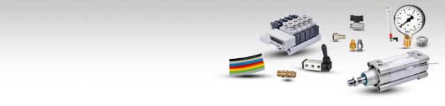 Pneumatikcylindere, pneumatikventiler, lynkoblinger, manometre, slanger, pakningsringe, lyddæmpere, tryktanke.