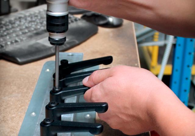 Vi samler selv udvalgte størrelser af greb fra Elesa+Ganter på vores værksted. Ved selv at samle greb kan vi forkorte leveringstiden og tilbyde flere farver, typer og størrelser. Det er også muligt at få tryk eller lasergravering med egen tekst på håndtaget.
